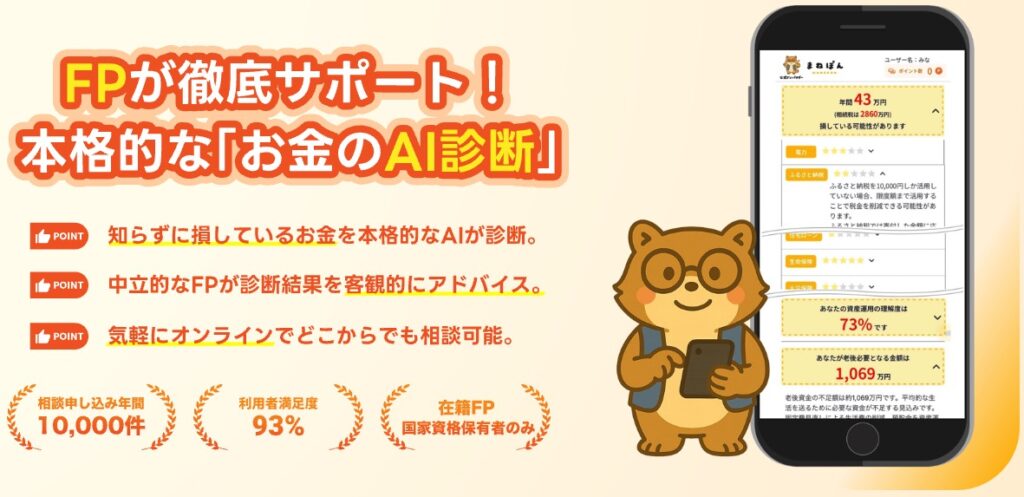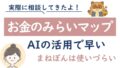 お金のみらいマップ は、AI診断 × FP相談でお金の悩みを解決できるFP相談サービス。