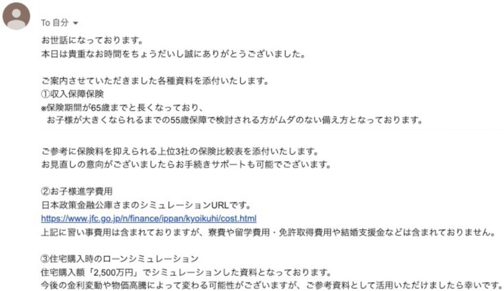 全く関係のないFPに繋げて終わり!ということがなく、本当にお客様を大切にされているのがわかりますね。