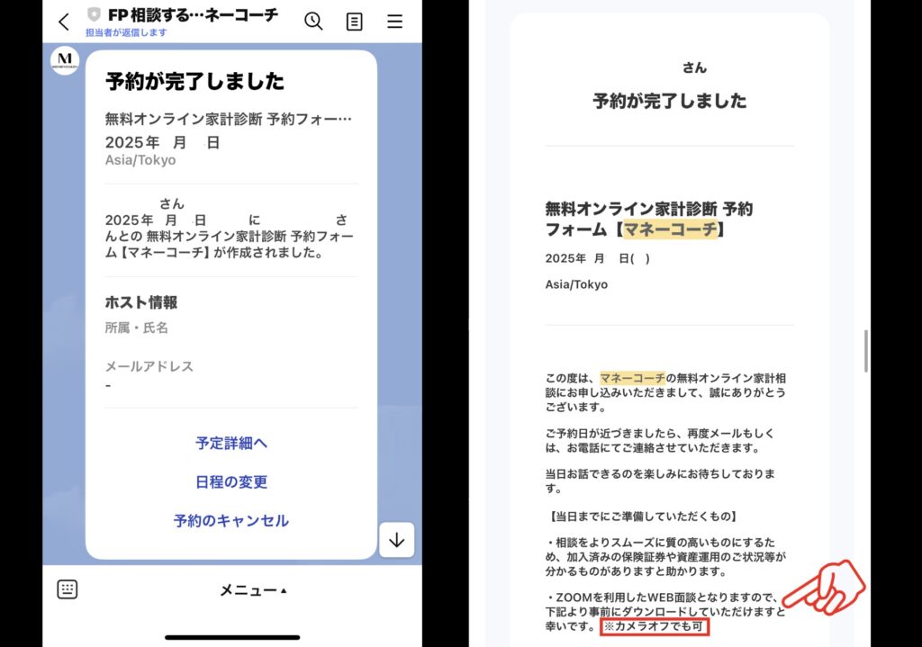 ほとんどのFP相談がカメラオンを求める中、このちょっとした気遣いからお客様ファースト思考が伺えますね。